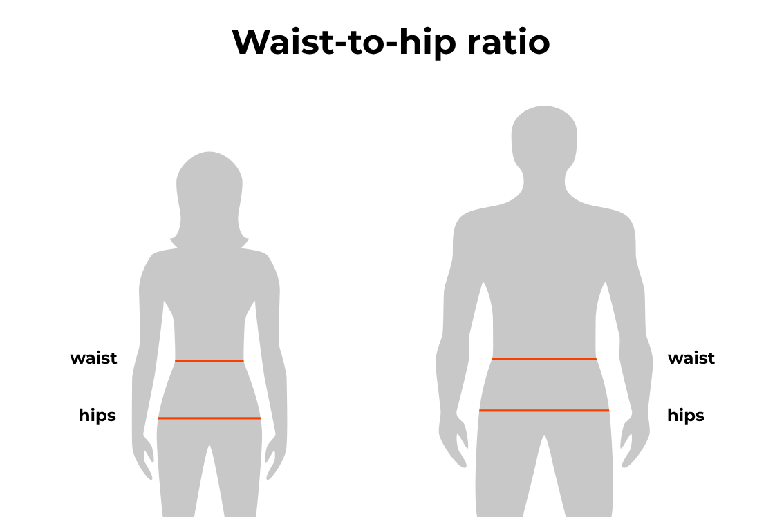 Співвідношення обʼєму талії до стегон зазвичай більш виражене у жінок через природні відмінності в будові тіла.