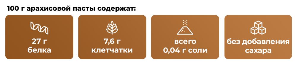 Арахисовая паста — это вкусность, изготовленная из 100% арахиса, в которую вы мгновенно влюбитесь. Она покорит вас своей кремовой консистенцией, золотистым цветом и бескомпромиссным ореховым вкусом. Ее секрет заключается в тщательном отборе ингредиентов и бережной обработке.