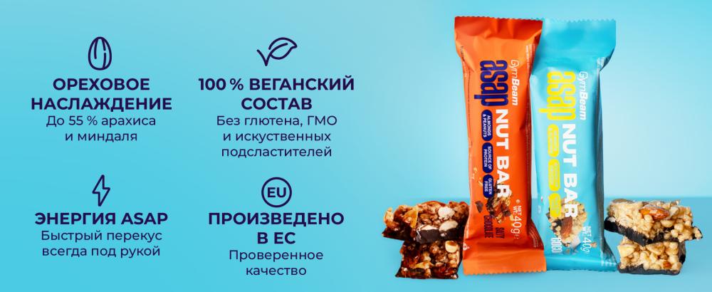 Ореховый батончик ASAP – веганский и безглютеновый ореховый батончик с протеином и клетчаткой, идеальный для перекуса в любое время дня