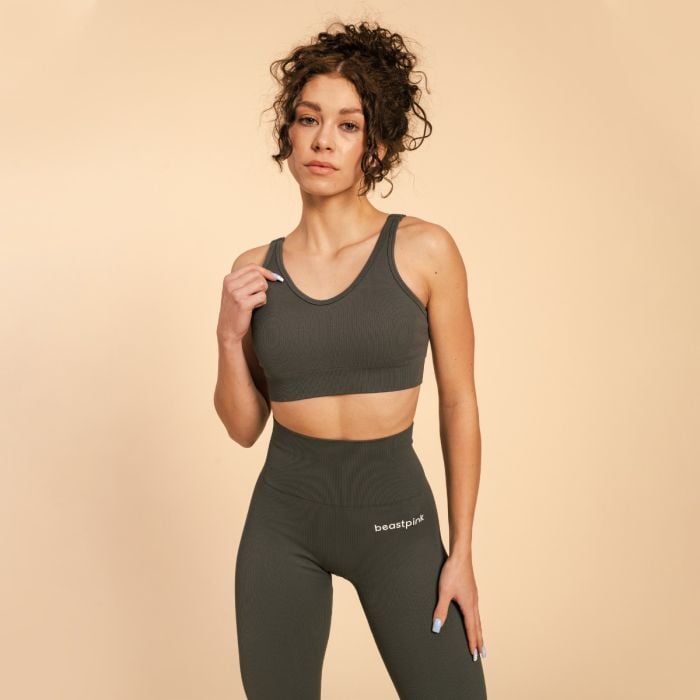 В дополнение к превосходному материалу бюстгальтера, вы также оцените его посадку. Он идеально облегает ваши изгибы, чтобы вы могли сосредоточиться на тренировке. Нельзя не упомянуть и о его нестареющем внешнем виде. Он впечатляет своим модным ребристым узором и стильным BeastPink логотипом на спине. Благодаря этому его легко сочетать с другими вещами из вашего гардероба.