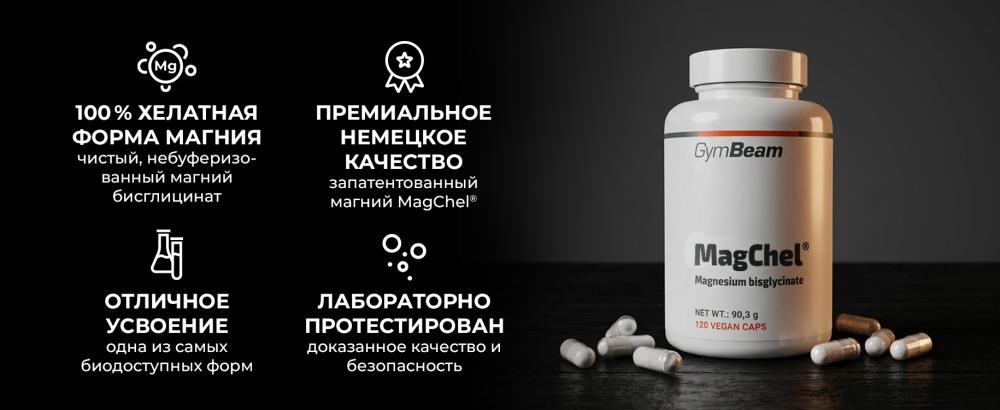 MagChel® - бисглицинат магния - это высокотехнологичная добавка магния в высококачественной хелатной форме, а именно 100% чистый небуферованный бисглицинат магния. В этой органической форме магний связан с двумя молекулами аминокислоты глицина. Это ключевое связывание гарантирует его эффективность, стабильность и хорошую биодоступность. MagChel® является зарегистрированной торговой маркой немецкой компании MAGNESIA, которая имеет давние традиции премиального качества и является одним из европейских лидеров в разработке функциональных минералов и сырья для пищевых добавок.