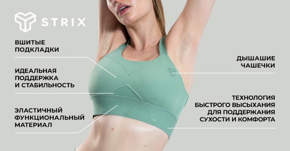 Конечно, надежный спортивный бюстгальтер должен обеспечивать хорошую поддержку во время тренировок и других активностей. Спортивный бюстгальтер Nebula надежно отвечает и этому требованию. Он идеально сидит и поддерживает грудь в естественном положении, независимо от того, прыгаете вы, бегаете или тренируетесь с максимальной интенсивностью. Однако безупречный материал и функциональность - не единственные его преимущества. Бюстгальтер имеет привлекательный однотонный дизайн, который завораживает с первого взгляда, ведь он со вкусом декорирован мелкими деталями, которые делают его действительно изысканным и оригинальным. Дополняют образ перекрещенные бретели на спине, и, наконец, эластичный пояс под грудью, украшенный логотипом STRIX, завершает стиль. Проще говоря, этот высококлассный спортивный бюстгальтер удовлетворит вас со всех сторон и точно не будет пылиться в вашем шкафу. Если вы хотите завершить свой образ, он идеально сочетается с леггинсами из той же коллекции.