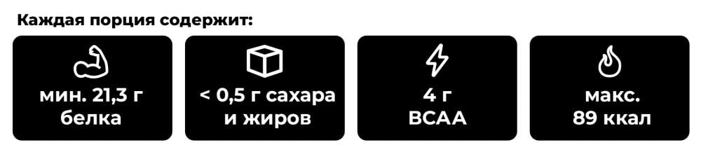 - уникальный сывороточный изолят без сахара и жира