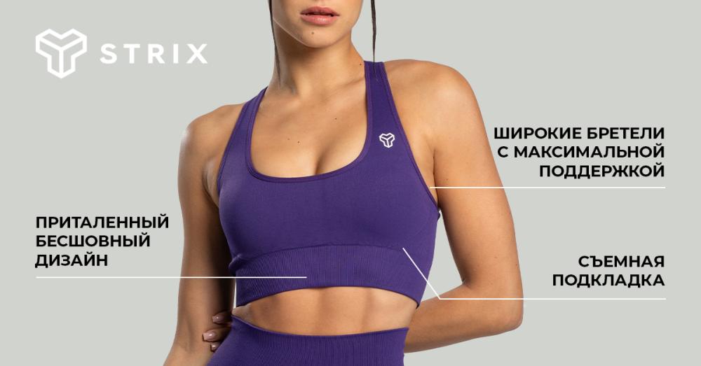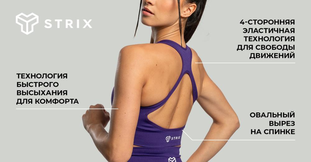 Дополняет его хорошо продуманный крой. Под грудью - плотный пояс в рубчик, который комфортно прилегает к коже, не давит, но при этом обеспечивает поддержку. Практичная съемная подкладка усиливает эту поддержку. Бесшовный дизайн обеспечивает максимальный комфорт для кожи. Стильный вырез на спине добавляет ему привлекательности, одновременно сводя ткань к минимуму, предотвращая излишнее потоотделение. Для того, чтобы топ прочно держался на месте, он имеет две широкие бретели, которые обеспечивают максимальную поддержку во время интенсивных тренировок. Стильный круглый вырез подчеркивает общий стильный вид топа. Одним из самых больших преимуществ этого спортивного топа является его минималистичный дизайн. Однотонная основа дополнена стильной надписью STRIX на спине и изящным логотипом спереди. Он легко сочетается с шортами, леггинсами или джоггерами. Благодаря уникальному крою, вам даже не захочется надевать на него свитшот или футболку. Если вы ищете удобный спортивный топ как для тренировок, так и для отдыха, вы его нашли. Бесшовная одежда предлагает четкие, минималистичные линии и привлекательный вид, помогая вам оставаться стильной даже во время тренировок.