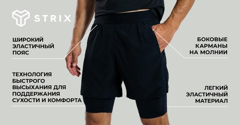 Шорты подстраиваются под Ваши бедра, а благодаря технологии 4-сторонней растяжки они отлично тянутся. Это обеспечит вам максимальную свободу движений во время достижения личных рекордов. Технология быстрого высыхания обеспечивает быстрое высыхание и превосходное отведение пота, что, безусловно, будет полезным для вас. Лучшие спортивные ощущения этих шорт еще больше усиливается благодаря эластичному поясу с логотипом STRIX, позволяющему настроить посадку по вашим предпочтениям. Шорты ULTRA 2в1 идеально подходят для тренажерного зала, уличных тренировок, бега, катания на коньках и различных других видов спорта, где вы хотите расширить свои границы.