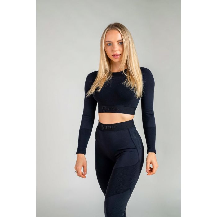 Функциональный топ Infinity сочетает в себе длинные рукава и короткий крой, который подчеркнет ваш подтянутый пресс