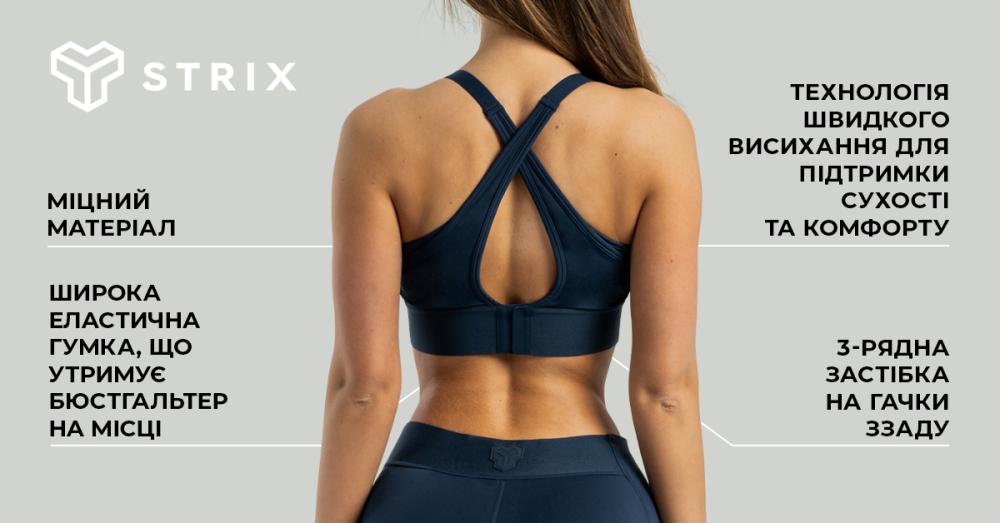 Крім того, родзинкою бюстгальтера є його інноваційний та вишуканий дизайн з увагою до кожної деталі. Він дає зрозуміти, що ви не йдете в ногу з натовпом і завжди хочете для себе найкращого. Приєднуйтесь до еліти, сформованої навколо бренду STRIX і повною мірою висловлюйте свою любов до активного способу життя.