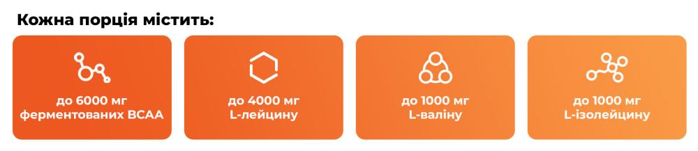 BCAA 4:1:1 у формі порошку - це добре розчинний порошок, що містить амінокислоти з розгалуженим ланцюгом у формі l-лейцину, l-ізолейцину та l-валіну. При змішуванні з водою утворює освіжаючий напій, який ідеально підходить під час і після тренування. Підходить для спортсменів, які займаються силовими видами спорту та розвивають витривалість.