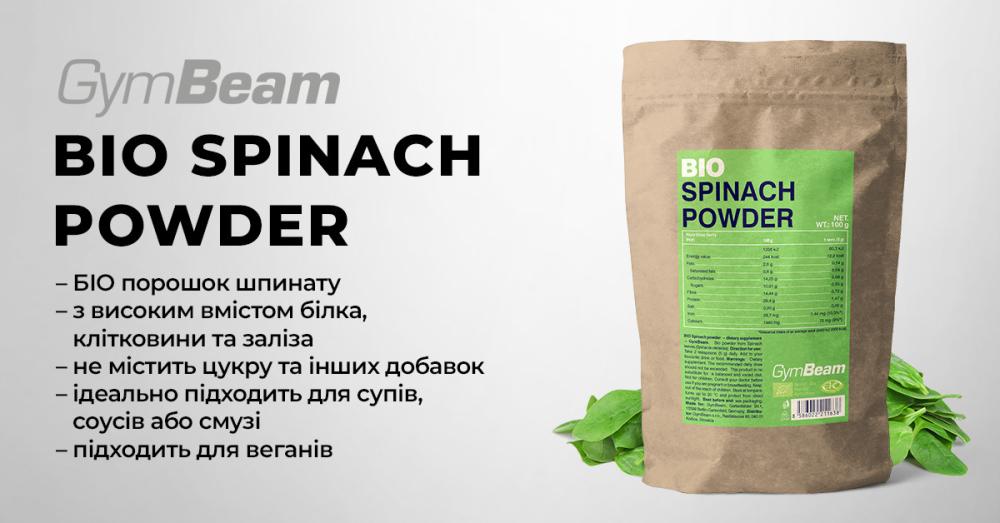 Шпинат в порошку характеризується високим вмістом білка, який сприяє росту і підтримці м'язів, а також здоров'ю кісток. Завдяки високому вмісту клітковини, він є підходящою добавкою для всіх любителів фітнесу. Цей порошок також містить значну кількість заліза, яке сприяє правильному обміну речовин, важливому для вироблення енергії та правильного транспорту кисню в організмі. Крім того, воно сприяє зниженню втоми та виснаження, виробленню червоних кров'яних клітин та оптимальному функціонуванню імунної системи. Достатнє споживання заліза також дуже популярне серед жінок.