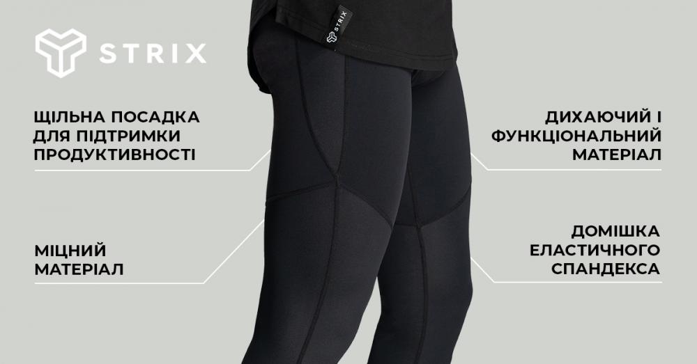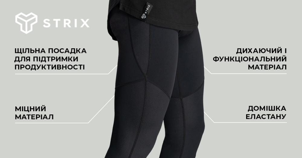 Вони задовольнять вас своєю міцністю, комфортом і свободою рухів, яку вони забезпечують на кожному тренуванні. Ба більше, вони ефективно вбирають піт і щільно облягають м'язи, допомагаючи вам подолати особисті межі продуктивності, чи то силові тренування, чи то велоспорт, чи то біг, чи то будь-який інший вид спорту. Мінімалістичний дизайн поєднує матову тканину з глянцевими панелями, що дає змогу легко поєднувати їх із найрізноманітнішими футболками, куртками та толстовками. Приєднуйтесь до еліти, що сформувалася навколо бренду STRIX, і повністю висловіть свою любов до активного способу життя.