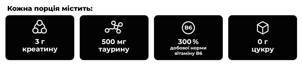 Crea3Max – преміальна суміш з 3 видів креатину для підвищення фізичної продуктивності під час інтенсивних тренувань, збагачена таурином і вітаміном B6