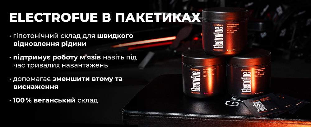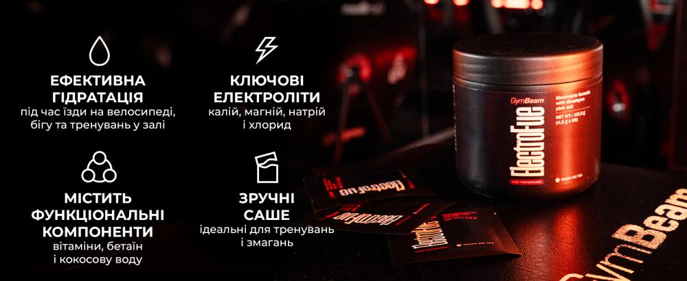 ElectroFue в пакетиках — це функціональний спортивний напій, який поповнює запаси окремих електролітів і вітамінів під час фізичних навантажень. Завдяки магнію і калію він сприяє нормальному функціонуванню м'язів. А вітаміни B6, B12 і C, що містяться в ньому, сприяють зменшенню втоми і виснаженості. Крім того, він не містить цукру і випускається в зручних пакетиках, які можна брати з собою куди завгодно.