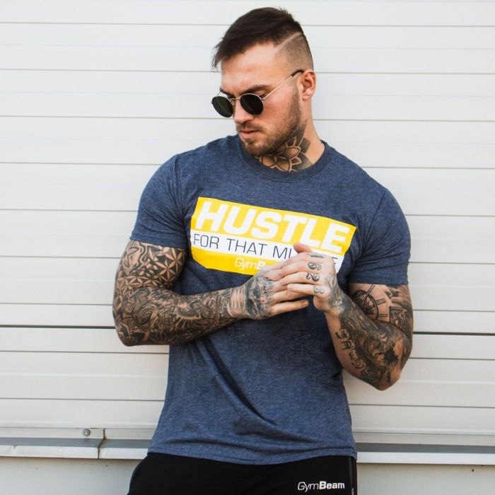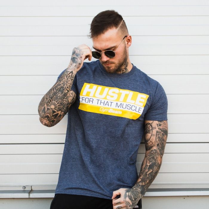 Футболка Hustle For That Muscle Heather Navy - GymBeam