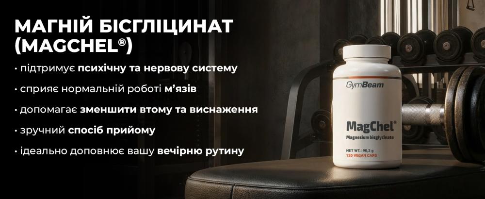 MagChel® - бісгліцинат магнію - це високозасвоювана хелатна форма магнію преміум-якості, яка сприяє нормальній роботі м'язів і психологічному функціонуванню