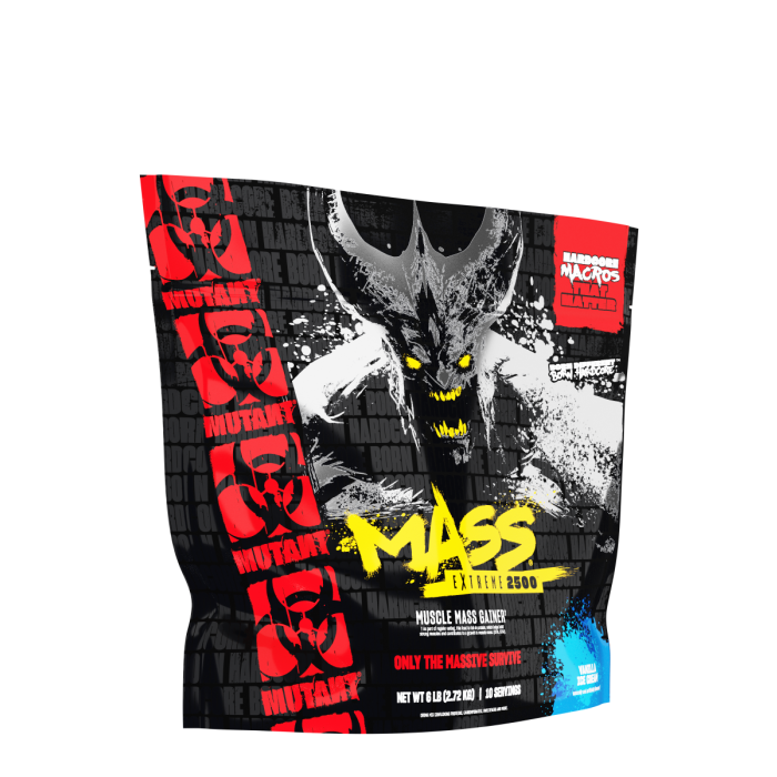 Mutant Mass Extreme - це ретельно розроблена комплексна суміш з високим вмістом вуглеводів. У поєднанні із чудовим її смаквподобають усі, хто прагне збільшити споживання калорій. Одна порція містить 1070 ккал. Такий величезний вмст калорій вразить не тільки так званих хард гейнерів, тобто людей, які дуже повільно набирають вагу. Енергетична цінність цього гейнера допоможе їм збільшити споживання енергії та таким чином сприяти ефективному набору м’язової маси.