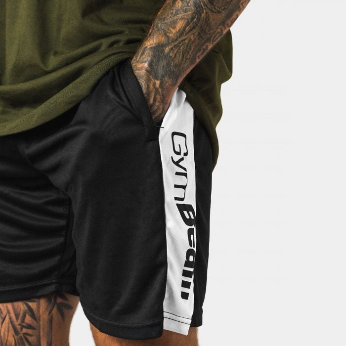 Шорти Vertical чорні - це чоловічі шорти, виготовлені зі 100% поліестеру, які є надзвичайно м'якими, легкими та мають дихаючу тканину, що робить їх ідеальними для будь-яких видів спорту. Вони доступні в чорному кольорі і, крім логотипу GymBeam, мають білі смужки з боків, що додають стилю. Вони мають еластичний пояс і шнурки для регулювання обхвату талії.