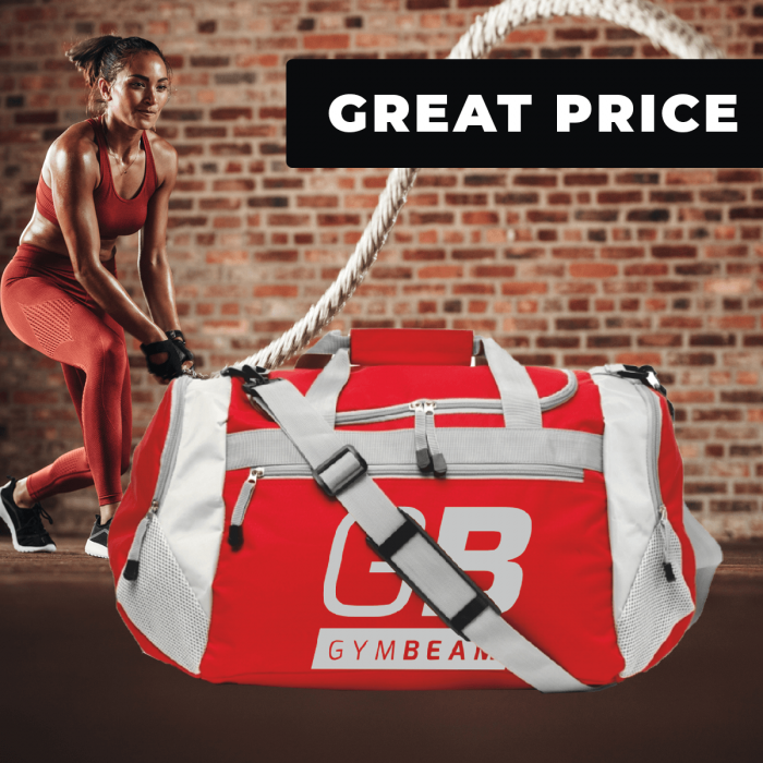 Сумка має головне відділення і дві бічні кишені, які можуть служити місцем для зберігання вологого одягу. На передній стороні сумки знаходиться сірий логотип «Gym Beam». Сумка має посилений плечовий ремінь, який ви можете відрегулювати за потребою. Сумка не тільки відмінно виглядає, але і виготовлена з якісних матеріалів.