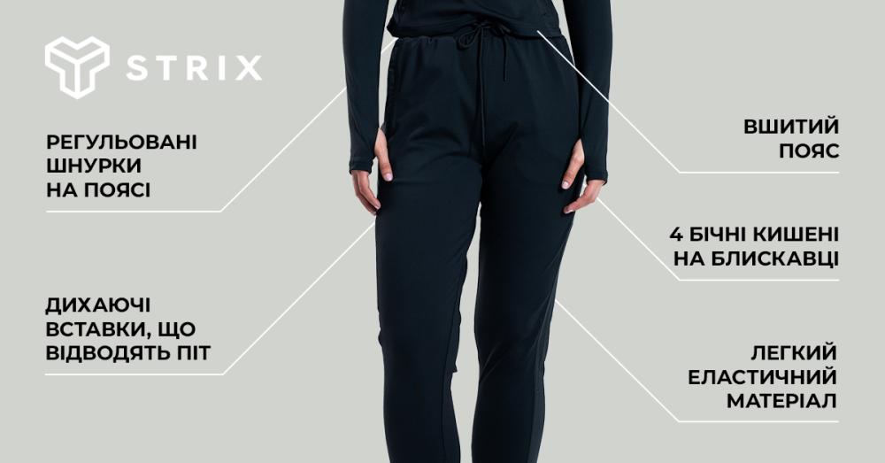 Завдяки всім цим характеристикам, ці штани преміум-класу є універсальним та необхідним елементом одягу для будь-якого жіночого гардеробу. Спортсменки із задоволенням носитимуть їх для бігу, катання на ковзанах, тенісу, а також силових тренувань у спортзалі. Вони також чудово підходять для походів або спокійних прогулянок на природі. Навіть якщо ви не займаєтеся спортом активно, вони підійдуть для повсякденного носіння, коли ви хочете потішити себе комфортом і спортивним виглядом. Просто одягніть їх з улюбленою футболкою, кроп-топом або худі, і ви матимете готовий стильний образ. Ці універсальні, функціональні спортивні штани зроблять вашу повсякденну активність приємнішою. Приєднуйтесь до елітної спільноти навколо бренду STRIX і покажіть свою любов до активного способу життя.