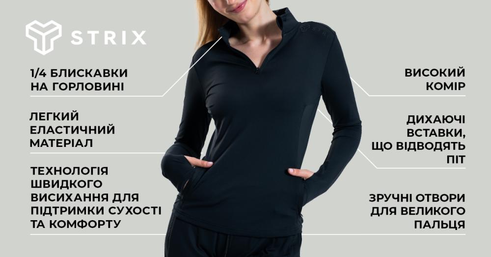 Жіноча спортивна кофта ULTRA - функціональна спортивна кофта з довгим рукавом, створена для активного способу життя. Належить до преміальної лінійки бренду STRIX, яка задовольняє потреби навіть найвибагливіших спортсменів. Виготовлена з комбінації поліестеру та еластану, вона гарантує еластичність та міцність у всіх відношеннях. Вона чудово відводить піт, а завдяки технології швидкого висихання зберігає вас сухими навіть під час найінтенсивніших тренувань. Крім того, вона також має дихаючі бічні вставки, які забезпечують функціональну циркуляцію повітря.