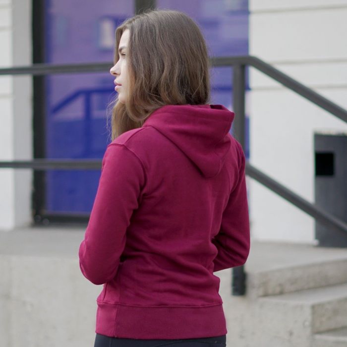 Athlete Burgundy - зручна жіноча толстовка з капюшоном, яка відмінно підійде як для тренувань, так і для повсякденного носіння