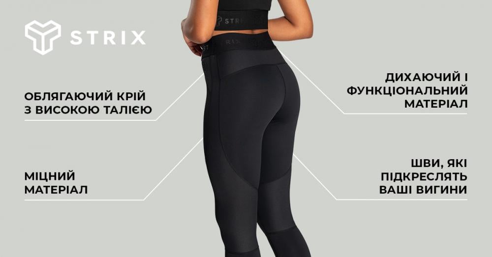Якщо ви любите моду, то, безсумнівно, оціните їхній стильний однотонний дизайн, прикрашений глянцевими вставками та логотипом бренду STRIX, розташованим на талії. Цей універсальний виріб завжди залишатиметься актуальним і легко комбінуватиметься з іншим одягом.