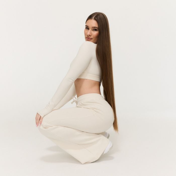 Ця модель відразу привертає увагу своїм сучасним розкльошеним кроєм, який плавно розширюється від колін до низу. Такий крій підкреслює фігуру і виглядає дуже жіночно. Оскільки вони не мають кишень, вони створюють елегантний образ. Більш того, ці джоггери з середньою посадкою оснащені практичною еластичною стрічкою і шнурком, що дозволяє регулювати їх відповідно до ваших потреб.